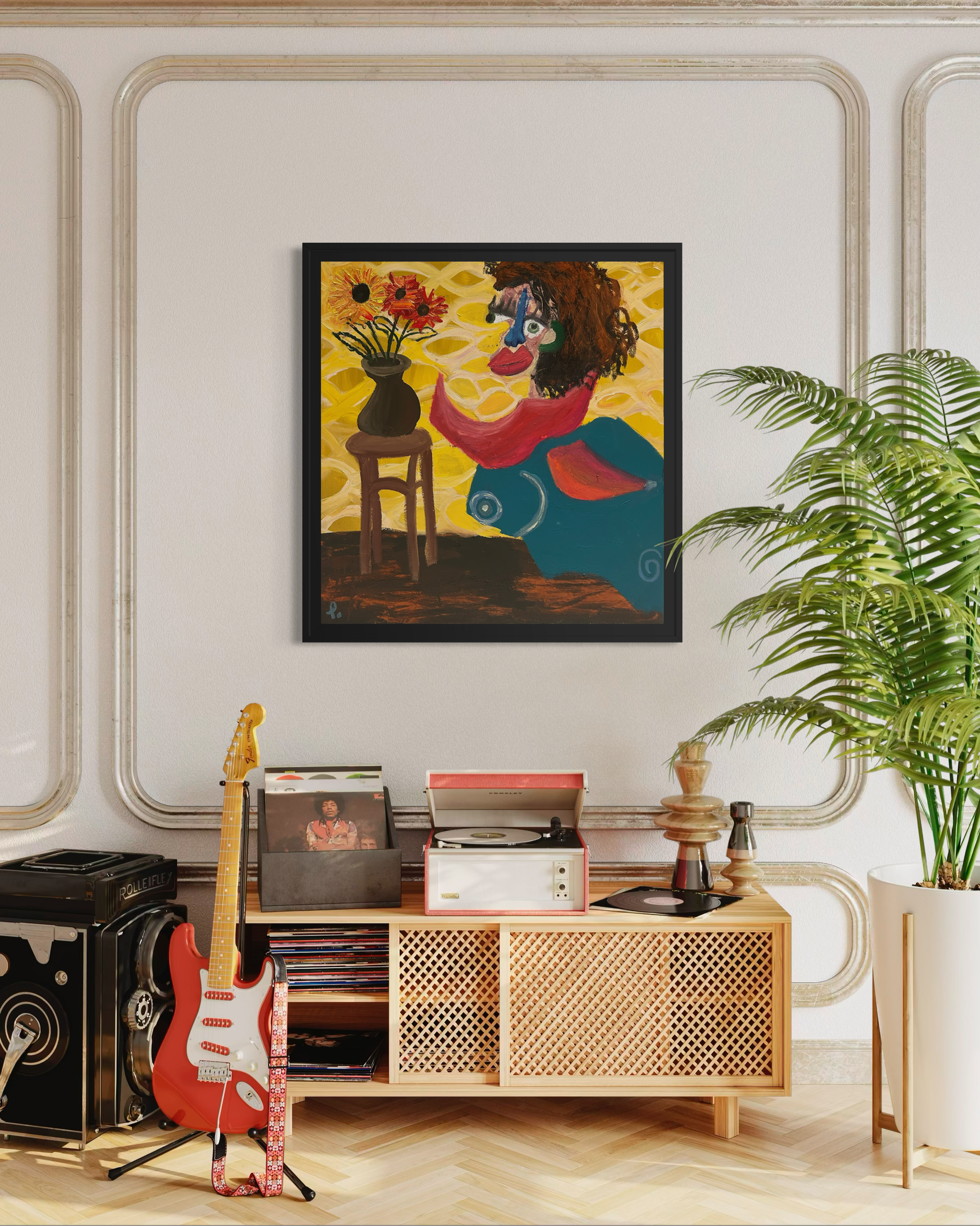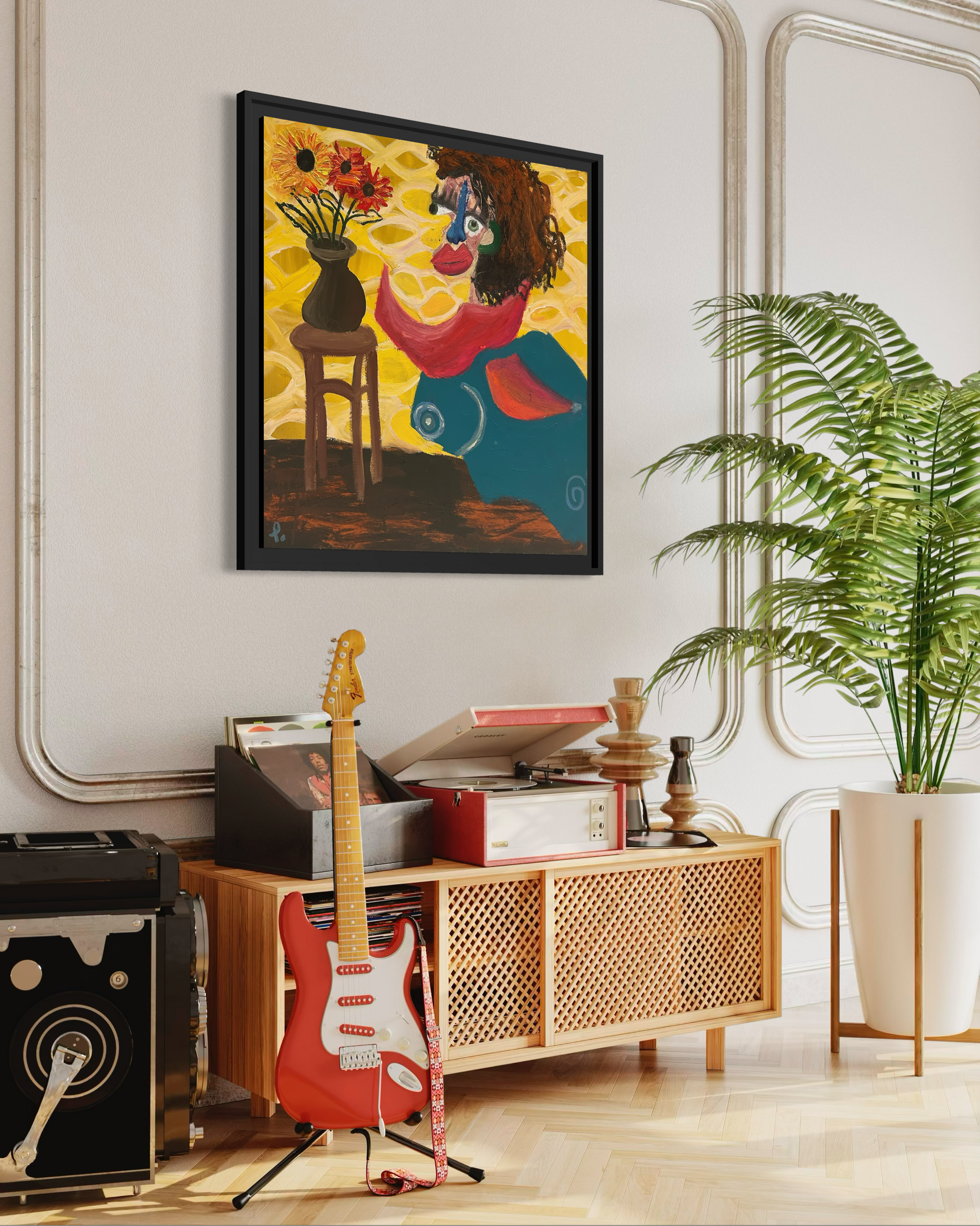 Au premier regard, elle semble presque lumineuse. Les couleurs sont vives, le décor chaleureux, les fleurs bien droites dans leur vase. Tout paraît stable.