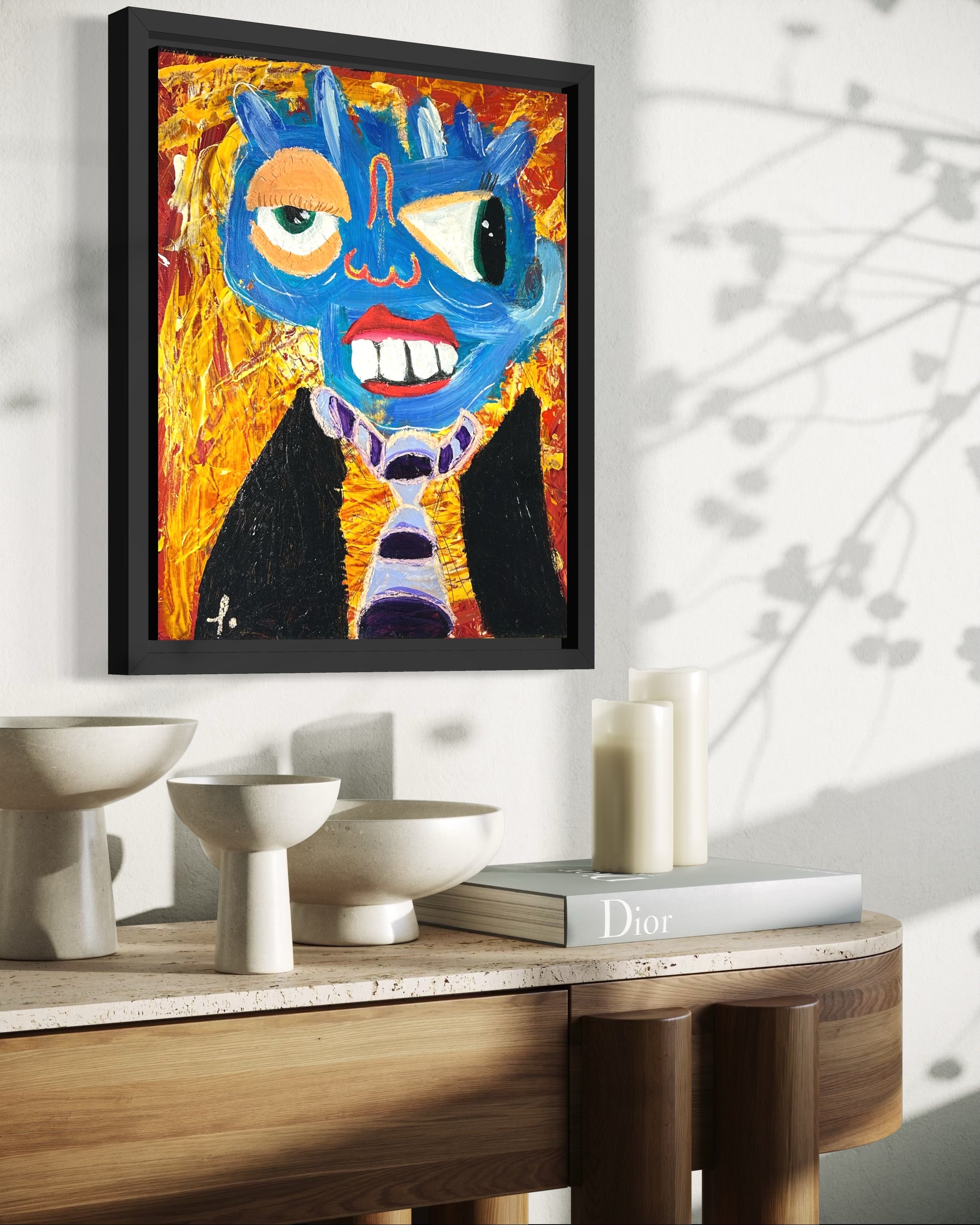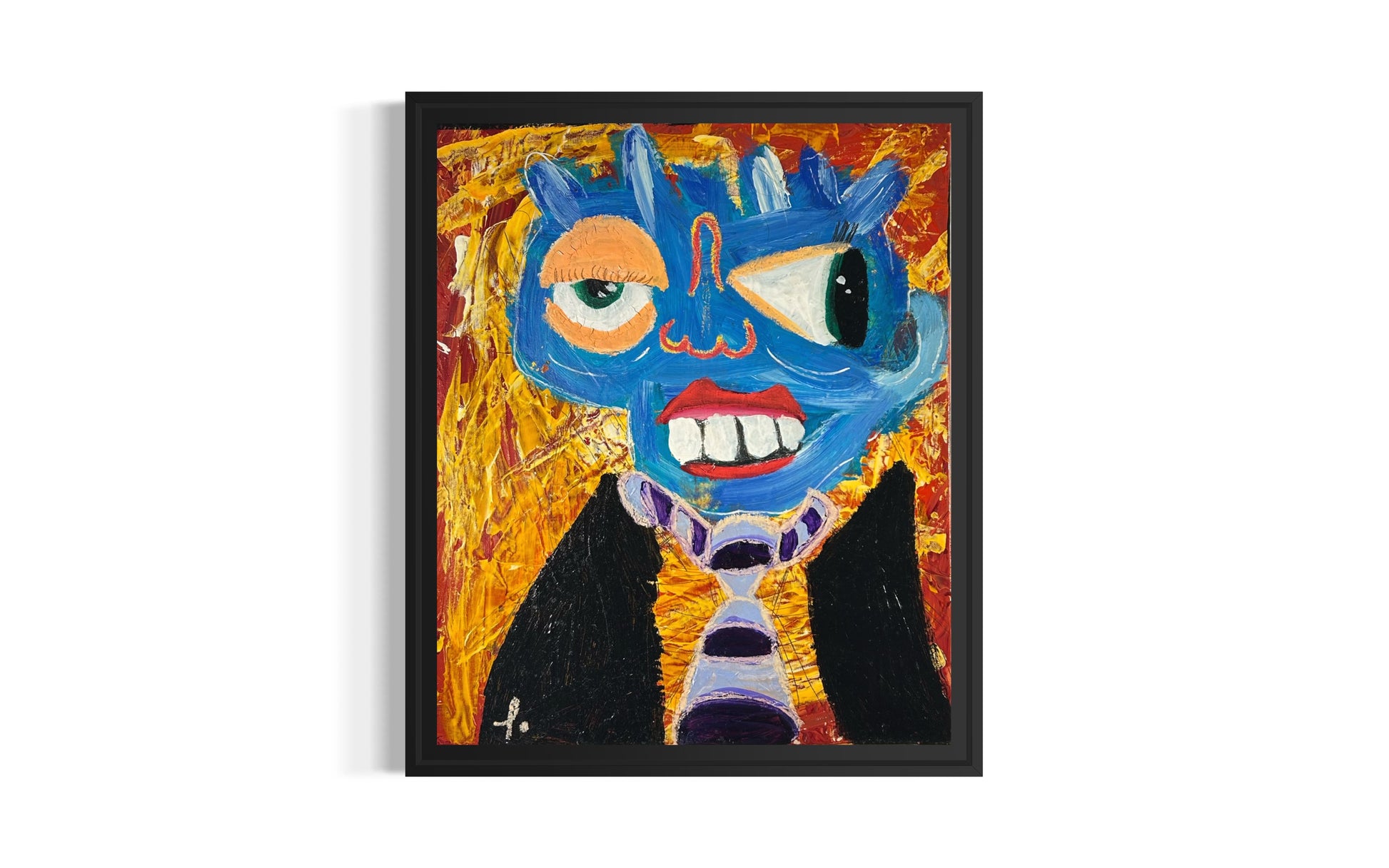 Son visage est bleu, trop bleu pour être naturel.
